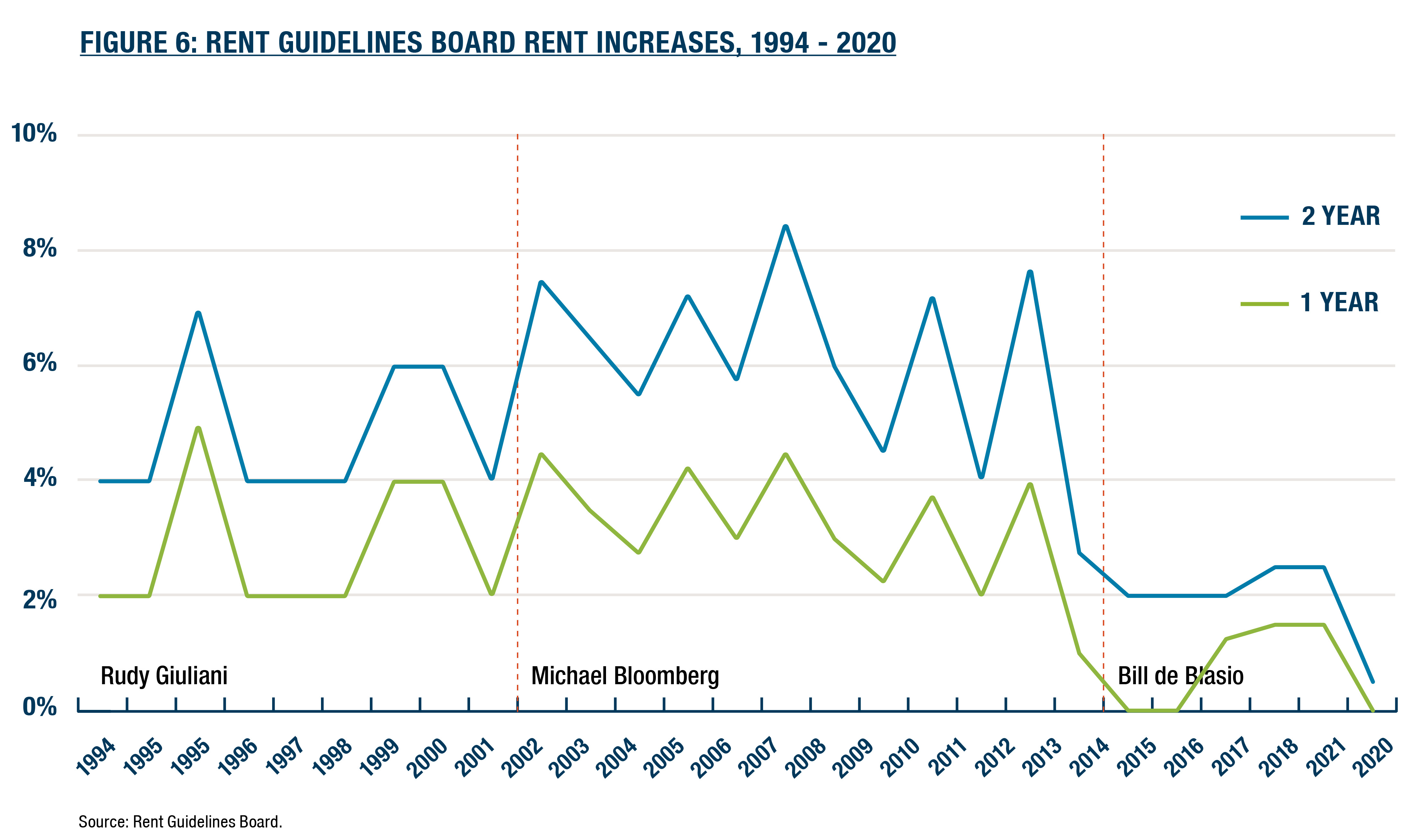 6. De Blasio’s Rent Guidelines Board approved three rent freezes for rent stabilized tenants, and when it did permit increases they were notably lower than those of previous administrations.