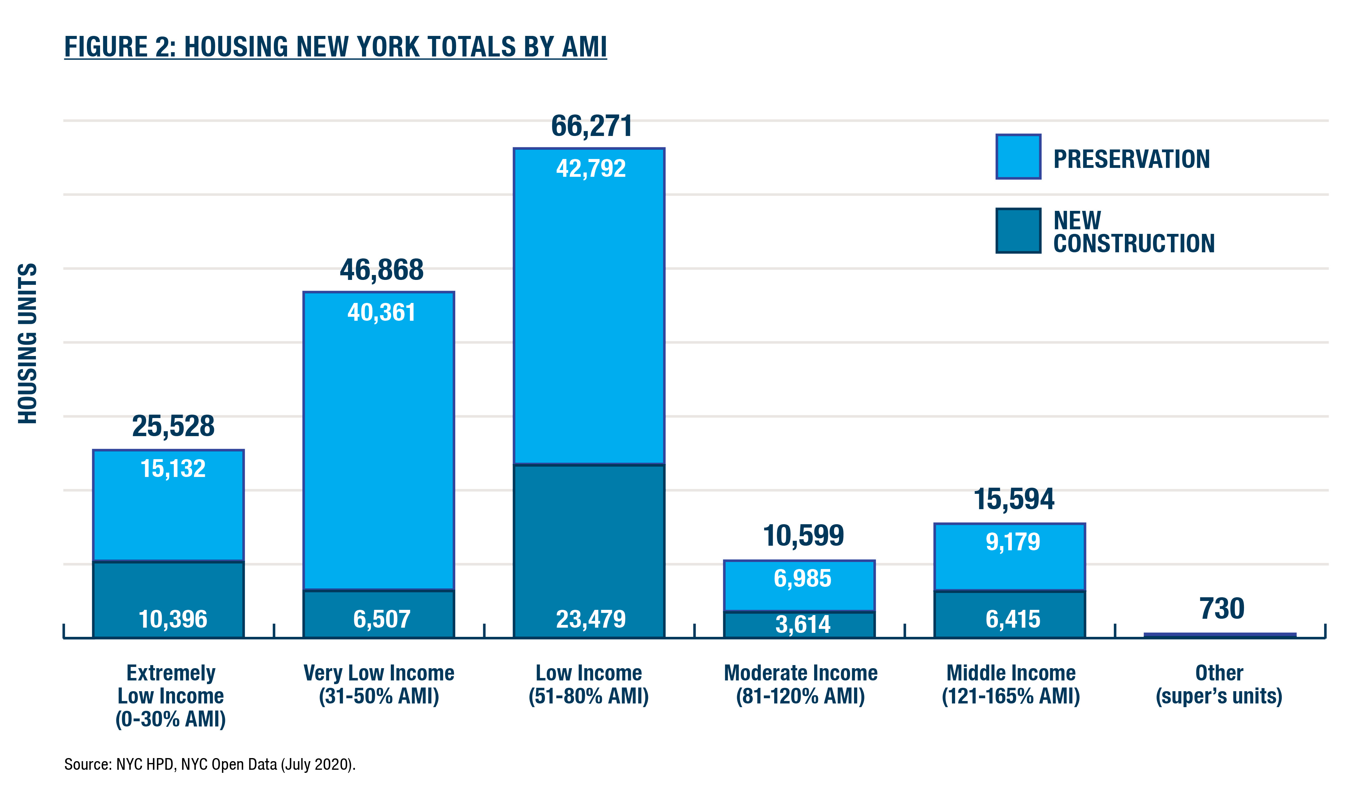 As of July 1, 2020, the administration achieved the following breakdown of affordable housing construction and preservation by AMI levels: