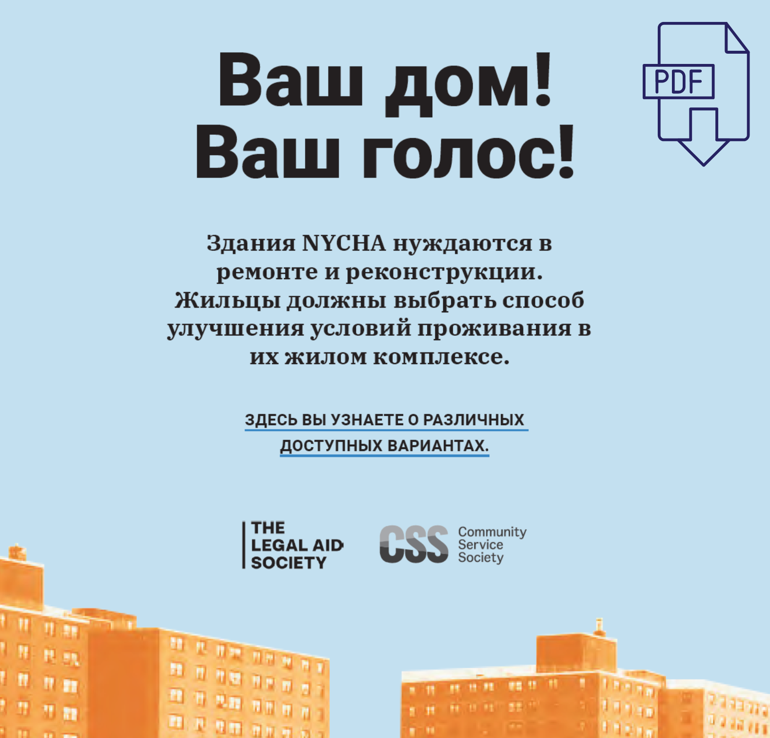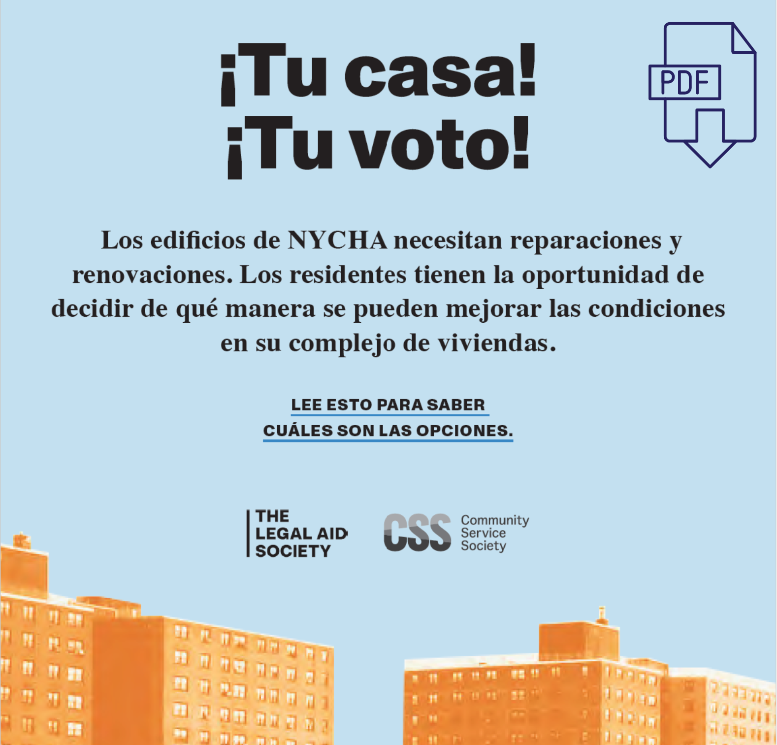 But now there's hope on the horizon. For the first time, NYCHA residents can choose their own path to housing preservation. They will decide how they want their development to be treated through a democratic voting process with three options.