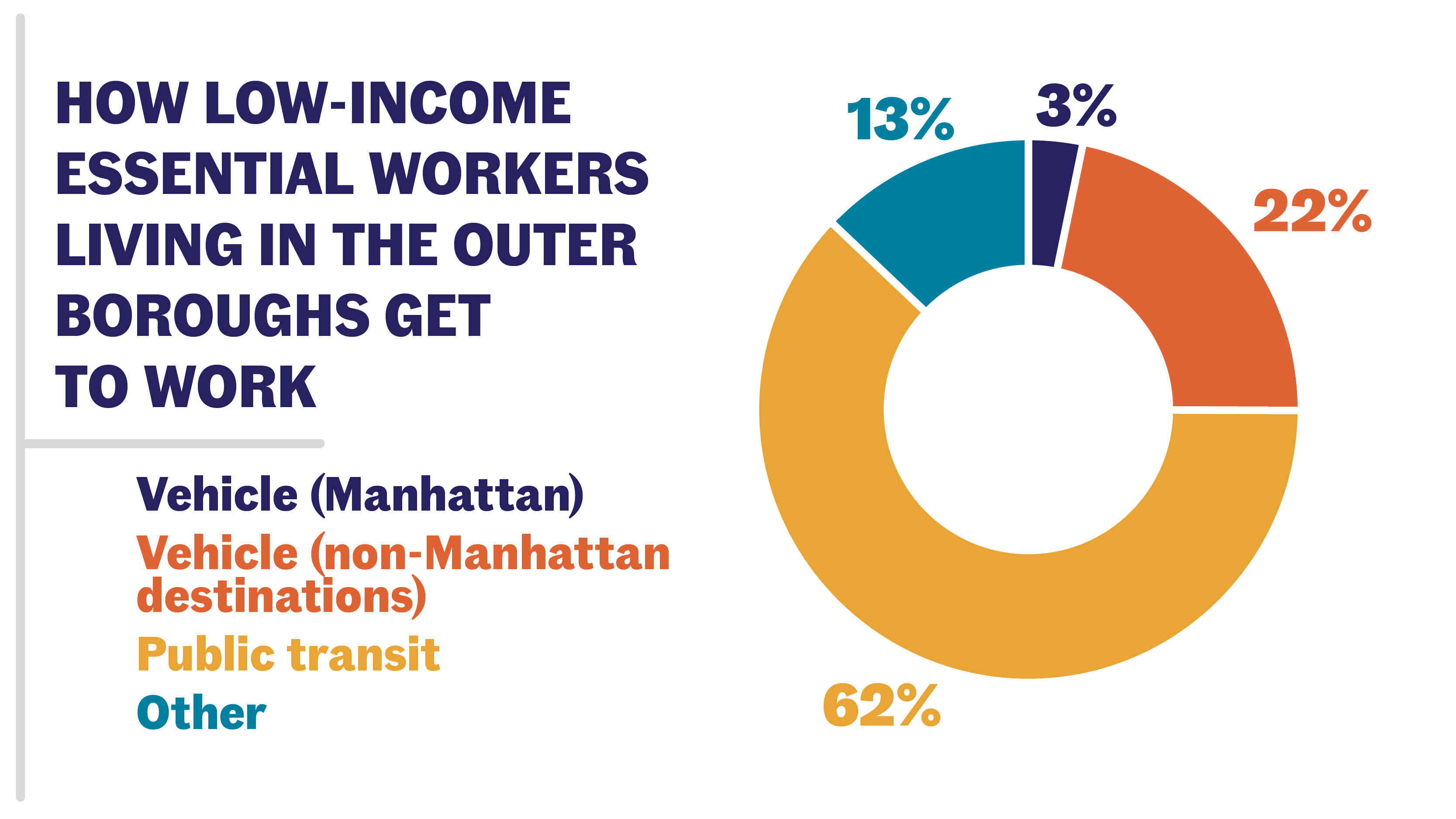 Most low-income essential workers living in the outer boroughs depend on public transit and just three percent might pay a congestion fee.