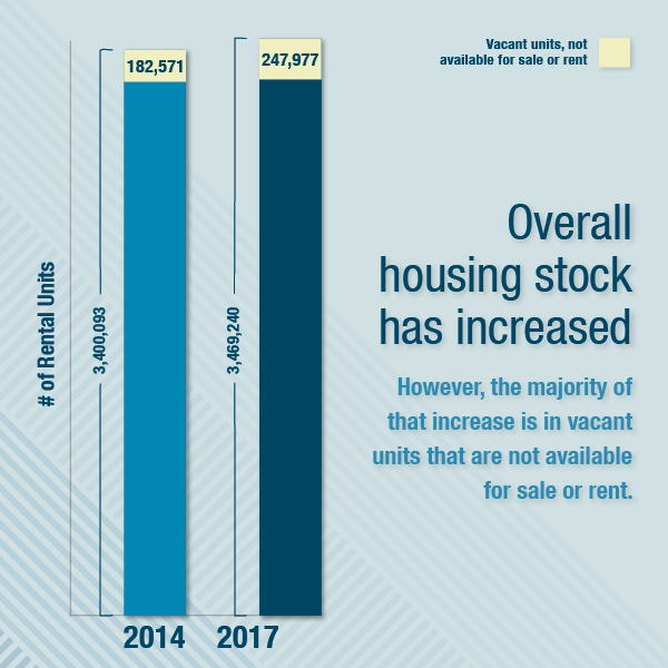 The overall housing stock has increased by approximately 69,000 units. However, the majority of that increase is in vacant units that are not available for sale or rent.