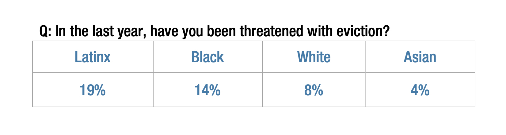 Figure 1. Before the pandemic, Latinx tenants were the most likely to be threatened with eviction.[2]